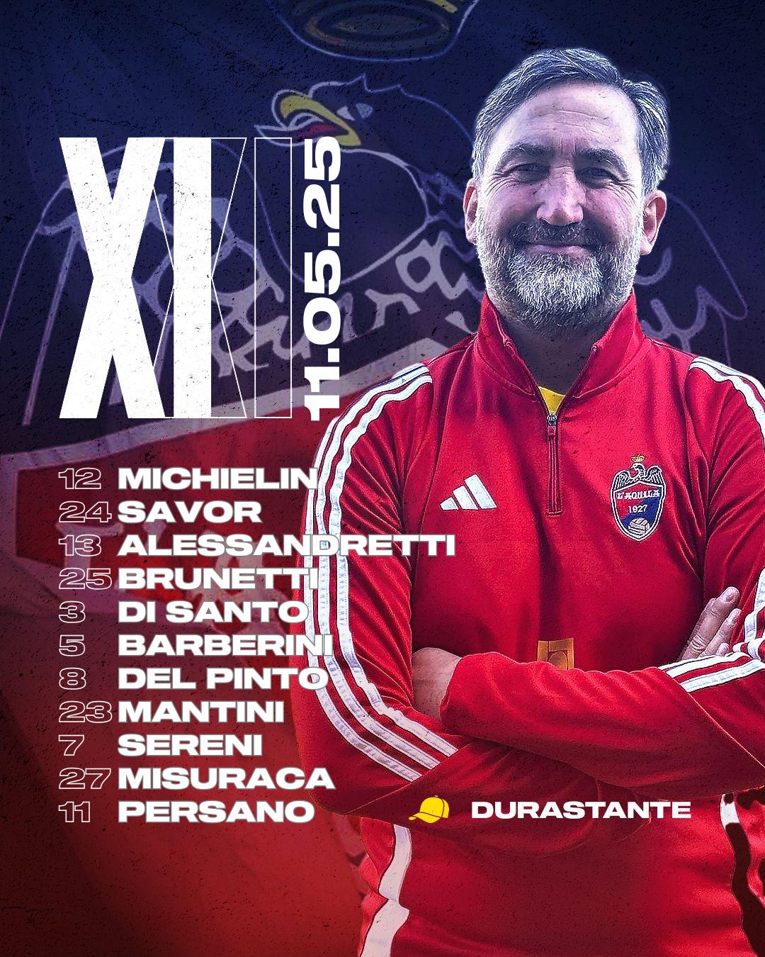L’AQUILA 1927: 12 Michielin, 24 Savor, 13 Alessandretti, 25 Brunetti, 3 Di Santo, 5 Barberini, 8 Del Pinto, 23 Mantini, 7 Sereni, 11 Persano, 27