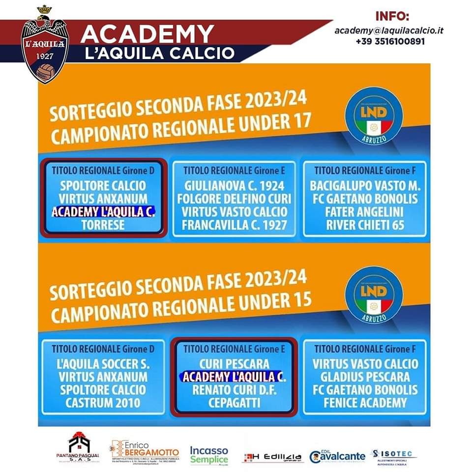 Sono stati effettuati nella giornata di ieri i sorteggi dei gironi della Seconda Fase dei campionati Under 17 Regionale e Under 15 Regionale. In virtù