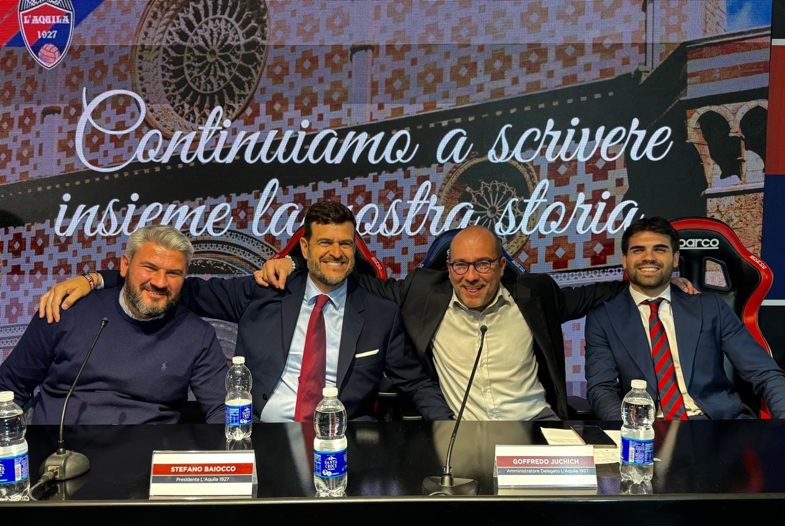 Nel nome di tutto questo, per ciò che è L’Aquila 1927 e per ciò che rappresenta per la sua gente, non potevamo rimanere indifferenti di fronte all’ennesima gestione societaria scriteriata e abbiamo deciso di prendere la situazione di petto, rilevando in prima persona la società e sanando oltre 60.000,00 € di debiti “ereditati” dalla vecchia gestione in Prima Categoria! Nei primi mesi del 2020 abbiamo permesso l’ingresso nella società, in qualità di Socio onorario, dell’associazione di tifosi “Aquile Rosso Blu” per garantire anche in futuro la rappresentanza dei tifosi nell’ambito de L’Aquila 1927. Anche il logo del club (ideato dai tifosi) è registrato con l’associazione, per svincolarlo da qualunque futura vicissitudine. Abbiamo promesso di riportare L’Aquila nelle categorie dove era prima del fallimento del 2018 e al termine della stagione 2022/23 abbiamo mantenuto la parola (senza fare un euro di debito).