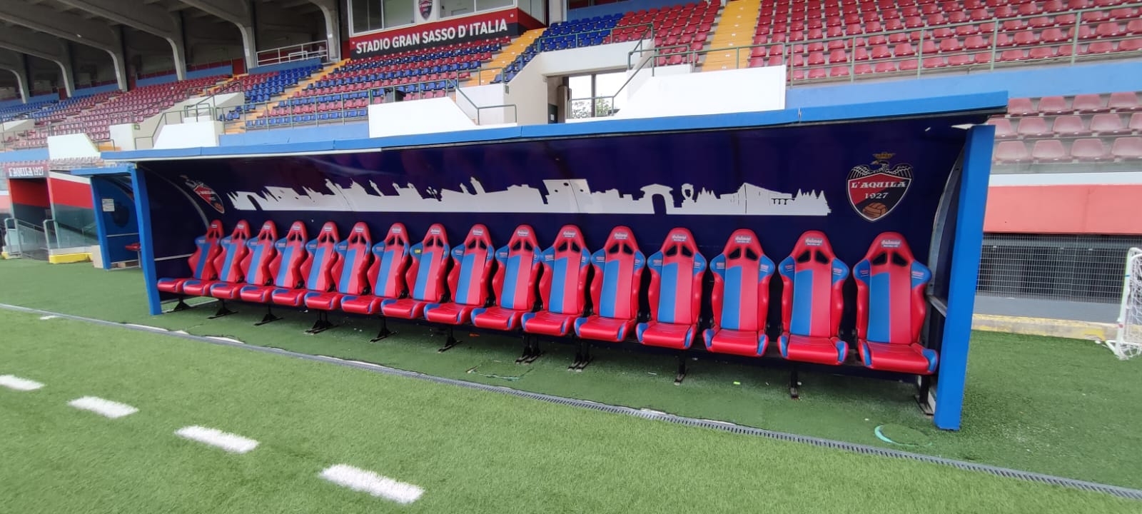 Nel gennaio 2020 sono state sostituite le vecchie e rovinate panchine con 32 sedute professionali rossoblù, che rendono molto più professionale e confortevole (sia per i nostri calciatori che per gli ospiti) la partita della domenica. Le nuove panchine trasudano identità, grazie alle pannellature personalizzate affisse nella parte interna che raffigurano lo skyline della città e i loghi del club. La differenza con le vecchie sedute è notevole e costituisce un importante passo verso la modernizzazione dell’impianto.