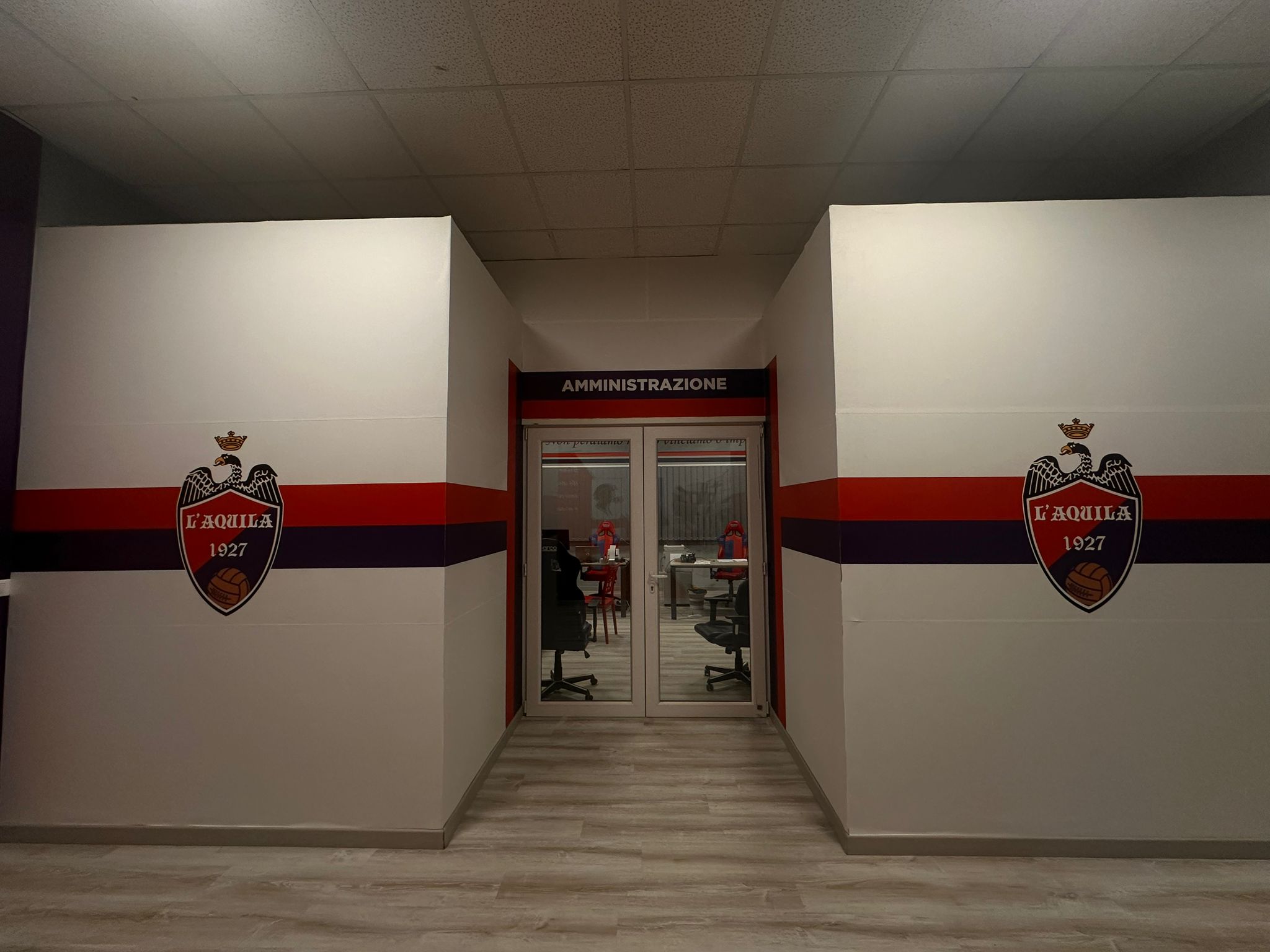 Tra gli spazi che hanno subito la maggiore trasformazione c’è sicuramente la segreteria. Situata nella pancia dello stadio, si tratta di un ambiente che è stato completamente rinnovato: da una grande stanza vuota ne sono state ricavate due più funzionali, una principale adibita a segreteria e sede del club e un’altra adibita a sala conferenze, con la possibilità di fare meeting a distanza. Nella sede del club è presente anche la bacheca dei trofei.