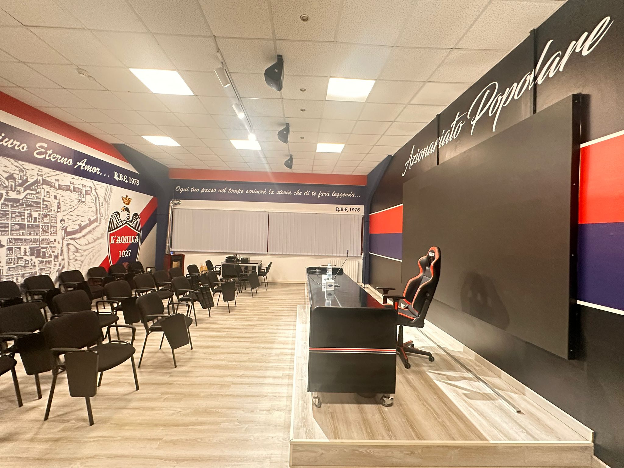 Il 30 luglio 2020 è stata inaugurata la sala stampa “Franco Giancarli”, situata nella pancia dello Stadio Gran Sasso, sotto la tribuna ovest. L’intitolazione allo storico e autorevole giornalista sportivo aquilano è un riconoscimento al lavoro svolto negli anni dallo stesso nel documentare le vicende della palla rotonda e ovale del Capoluogo. La nuova sala stampa non ha nulla da invidiare a quelle degli stadi di Serie A, essendo dotata di 25 postazioni e di un tavolo nero personalizzato con il logo del club, con 3 sedute professionali. La ciliegina sulla torta è arrivata ad aprile 2023, con l’installazione di uno schermo LED imponente alle spalle del tavolo. La sala stampa è impreziosita da gigantografie raffiguranti la pianta storica della città, il Gran Sasso ed altri emblemi e slogan simboleggianti la città, come testimonianza della forte identità territoriale del sodalizio. All’interno della sala stampa è anche situato l’ufficio di amministrazione del club.