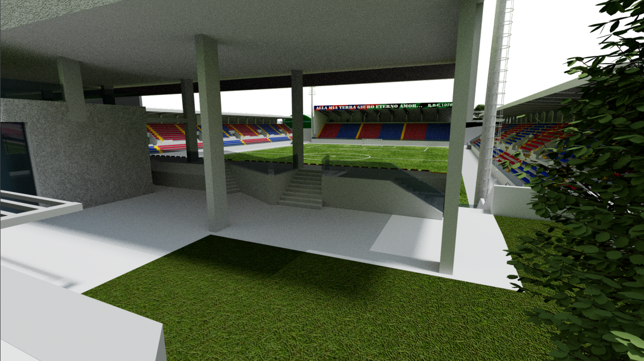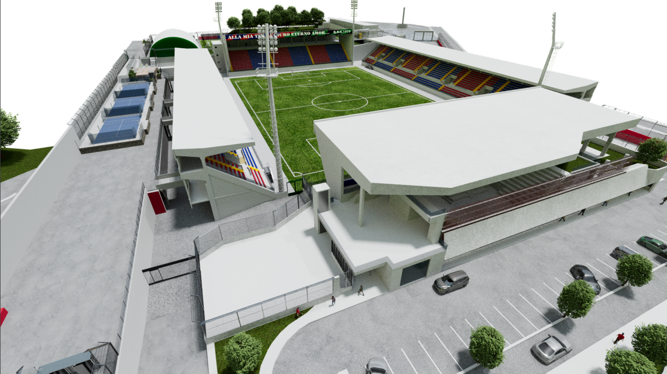 • Il Lotto Sud prevede la sostituzione edilizia della Curva Sud attraverso la realizzazione di una struttura contenente spazi commerciali, parcheggi, sala polifunzionale e teatro all’aperto. E’ inoltre prevista la realizzazione di campi polivalenti a monte della Tribuna Ovest e la riqualificazione energetica delle tribune.